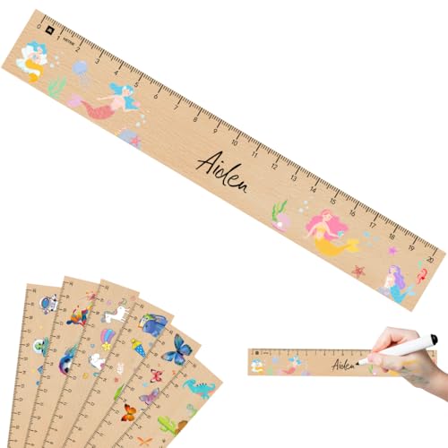 Montrestar Lineal Kinder, 21CM Holz Lineal mit Meerjungfrau Motiven, Einzigartige Grundschule Geschenke, Holzlineal Geschenk zur 2025 Mädchen Einschulung Schulanfänger Schuleinführung