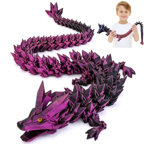 3D Gedrucktes Drache, 60CM Drachen Spielzeug mit Augen, Geheimnisvolle Realistische Drachen Figuren, Ewegliche Gelenke Kristall Drach en Deko Schreibtischspielzeug (Mystischer Schwarz-Lila Drache)