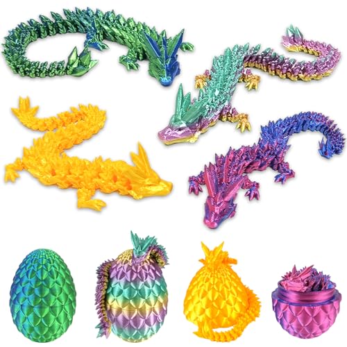 Audasi 3D Gedrucktes Drachenei mit Drache, 4Pcs Vollständig beweglicher Kristalldrache mit Osterei Drachen Spielzeug Action Figuren Überraschungsdrache Im Ei für Geschenke Beweglicher Dragon Egg
