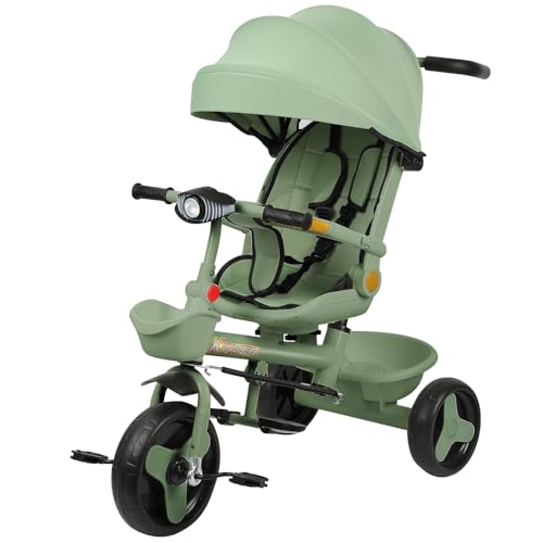 Dreirad für Kinder, mitwachsend, faltbar, mit verstellbarer Elternstange, leise, wendbarer Sitz, bequemer Griff, 100 x 75 x 50 cm, Grün
