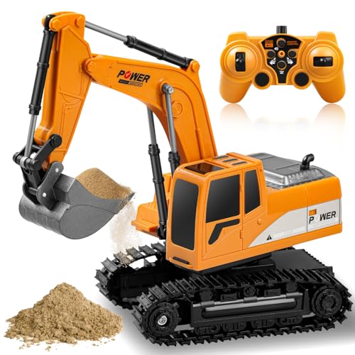 Daioller Ferngesteuerter Bagger für Kinder, Escavatore Telecomandato,RC Bagger mit Metall Schulterpolster, hydraulischer Bagger für Kinder mit Lichtern und Geräuschen, 6-Kanal-Sandbagger