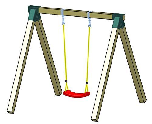 Einfachschaukel Massiv Vierkant mit Metallverbindern - Komplette 9x9cm Kreuzholz Konstruktion! All Inklusive Paket mit Schaukelsitz, 4 Bodenankern, 2 Schaukelschellen und Verschraubung Abmessung: ca. 180 cm breit, 170 cm hoch, Schaukelbalken und Standpfosten: 9x9cm Hochwertige pulverbeschichtete Metallverbinder in der Farbe grün - Kiefer kesseldruckimprägniert - stabile Schreinerarbeit alle Schrauben im Lieferumfang enthalten - für ein Schaukelelement geeignet - Imprägnierung nach der Fertigung, Hersteller: HOQ