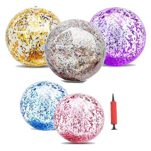 5 Stück Wasserball Aufblasbar Inflatable Pailletten Beach Ball Glitter Strandball Sommer Poolball Outdoor Activity Schwimmbad Pool Beach Party Wasserspielzeug für Kinder Erwachsene (3*40cm+2*60cm)