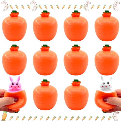 TOPJOWGA Anti Stress Bälle Ostern, 10 Stück Stressball Kreatives Karotten Kaninchen StressSpielzeug, Stressball in Ostereier, Stress Relief Spielzeug, Mitgebsel Kindergeburtstag Geschenk Ostern