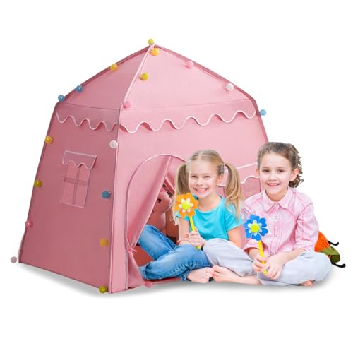Balakaka Spielzelt für Kinder 130x100x130cm, Große Prinzessin Zelt mit Fenstern Atmungsaktiv, Kinderzelt Madchen Spielzelt Kinder Innen und Außen, Rosa