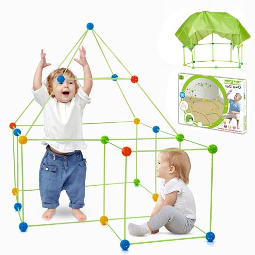 Fort Bausatz Kinder,Spielzelte mit 54 Stäben und 31 Bällen,DIY Höhle Kinder Konstruktionsspielzeug,Kreatives Bauset für Höhle Bauen Indoor,Konstruktionsspielzeug für Wohnzimmern,Schlafzimmern