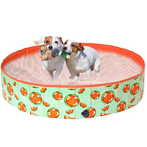 COMSLE Hundepool fur Große Kleine Hunde,80/120/ 160CM Faltbar Hunde Planschbecken, Tragbar & Eco-Friendly PVC Hunde Pool, Wassermelone