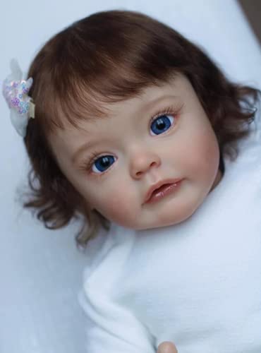 60CM Top-Qualität echte Babygröße Reborn Sue-Sue 3 Monate Hand-Detaillierte Malerei 3D Hautton Hand verwurzelt braunes Haar