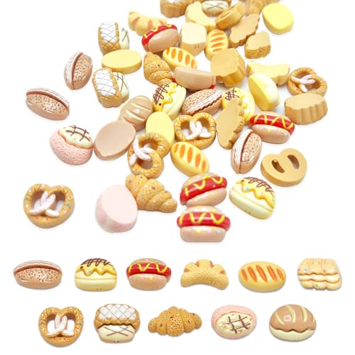 BRDXOOL 50 Stück Miniatur Puppenhaus Zubehör Miniatur Brot, Hamburger, Hot Dog, Mini Küche Backset Dekoration DIY Kreative Szene Mikrolandschaft Kleine Ornamente Modell Harz