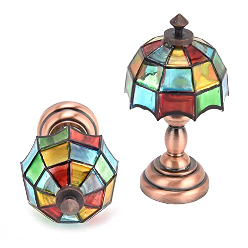 Denash Puppenhaus-Lichter, 1:12 Mini-Licht, batteriebetriebene LED-Tischlampe, Möbellampe, Stehlampe, Puppenhaus-Tisch-Akzent, Tiffany-Lampe für Puppenhaus-Dekor