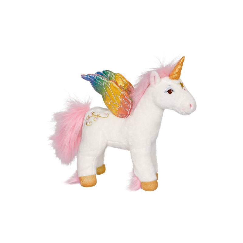 Hübsches Einhorn mit glitzerndem Horn und tollen Regenbogen-Flügeln Produktmaße: ca. 27 cm Material: Plüsch Füllung: Polyester