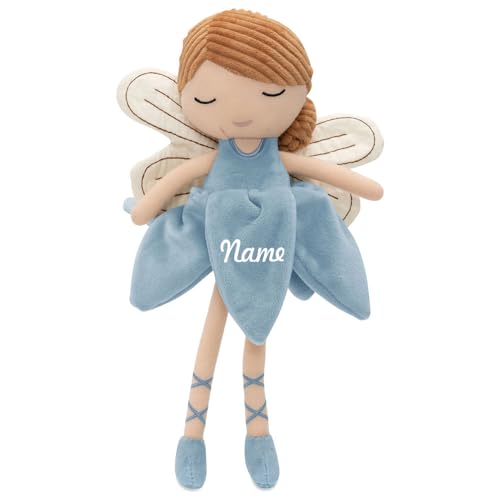 Personalisierte Kuschel- und Kinderpuppe Stoffpuppe mit Namen Kuscheltier Fee personalisiert Geschenk zur Geburt (Fee hellblau)