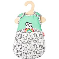 Schlaf, Püppchen, schlaf. Das Ins-Bett-bringen ist ein wichtiger Bestandteil beim Rollenspiel mit Puppen oder Kuscheltieren. Und hierfür benötigen Puppeneltern natürlich auch einen Schlafsack, in den sie ihr Baby gemütlich einkuscheln können. Im wattierten Puppenschlafsack der Pinguin Pünktchen-Serie von Heless schlafen Puppenbabys besonders sanft und weich. Und sehen dabei auch absolut niedlich aus: Der Mint-Ton im oberen Teil des Schlafsacks bietet einen tollen Farbkontrast zum weiß-schwarzen Punktedruck, auf dem der kleine Pinguin Pünktchen mit seiner Freundin auf einem Regenbogen sitzt. Die Klettverschlüsse des Schlafsacks lassen sich schnell und einfach öffnen und schließen - und machen das An- und Ausziehen somit zum Kinderspiel. Der Schlafsack passt den meisten marktgängigen Puppen der Größe 20-25 cm. wattierter Puppen-Schlafsack, in gender-neutralem, niedlichem Pinguin-Design fördert das Rollenspiel Klettverschlüsse ermöglichen kinderleichtes An- und Ausziehen wird auf einem Holzkleiderbügel geliefert passend für Puppen der Größe 20-25 cm