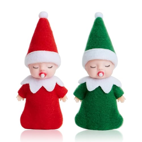 2 Stück Weihnachtselfen Figuren Mini Elfen für Jungen Mädchen,Rot Grüne Mini Puppe Elf Weihnachten Baby Winziger Weihnachtself für Weihnachten Neujahr Geschenk,Weihnachtsstrumpffüller
