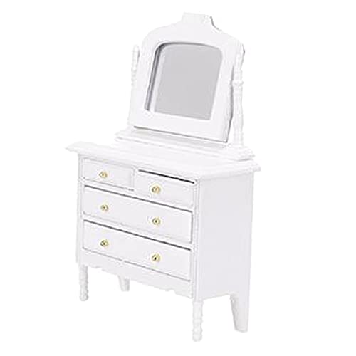 Puppenhaus Schlafzimmermöbel (Maßstab 1/12), Hölzerner Waschtisch Set Make Up Schminktisch Schreibtisch mit Schubladen, Weißes Finish