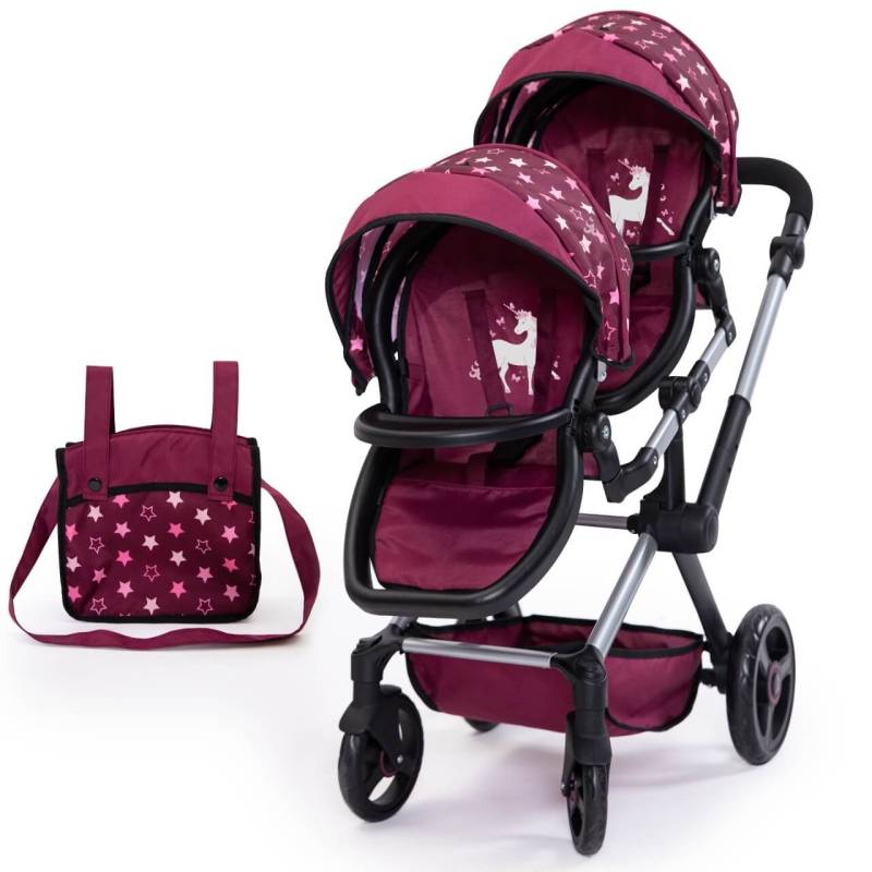 Zwillingspuppenwagen Xeo Twin bordeaux Sterne - Puppenwagen