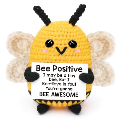 dinghaole Emotional Positive Bee, Funny Handmade Mini Crochet Bee with Encouragement Card, Good Luck Positive Gifts, Cute Emotional Support Gift Bees Gift, Leavers Gifts for Work Colleagues
