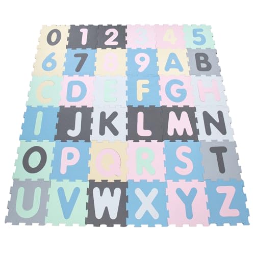Paco Home Puzzlematte Spielmatte Schaumstoffmatte Baby Kinder Matte rutschfest Zahlen Buchstaben Pastell 36 Teile, Grösse:32x32 cm x 36 STK., Farbe:Bunt