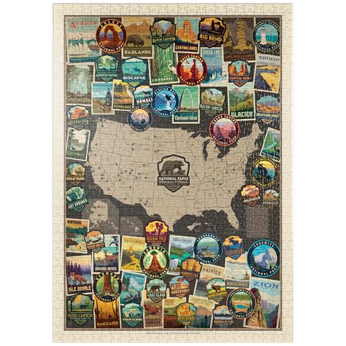 MyPuzzle 63 American National Parks Collage Map, Vintage Poster - Premium 1000 Teile Puzzle - MyPuzzle Sonderkollektion von Anderson Design Group