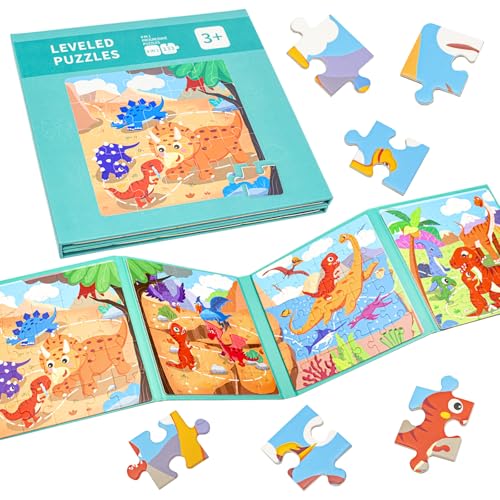 Kujinova Magnetische Puzzle, 73PCS Magnet Puzzle Beschäftigung, Magnete Puzzle Buchen für Kinder, Puzzle Dino Puzzle für Kinder, Reisespiele Kinder Lernmagnet Geschenk für den Roadtrip Flugzeug