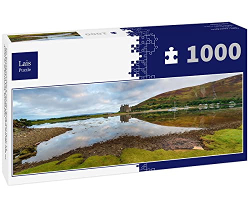 Lais Puzzle EIN Panoramablick auf die Burg aus dem 13. Jahrhundert in Lochranza bei Flut auf der Isle of Arran in Schottland, Panorama 1000 Teile Panorama