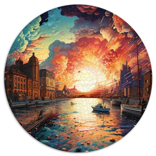 Puzzle für Erwachsene, 1000 Teile, Osloer Hafen, buntes rundes Puzzle für Kinder, für Erwachsene und Kinder ab 12 Jahren, Papppuzzle, Weihnachtspuzzlegeschenke für Frauen, Größe: 67,5 x 67,5 cm
