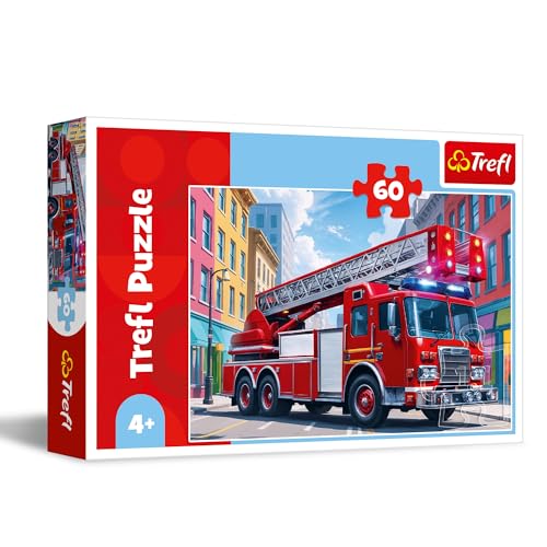 Trefl - Feuerwehrauto - Puzzle 60 Teile - Buntes Puzzle mit Fahrzeugen, kreative Unterhaltung, Spaß für Kinder ab 4 Jahren