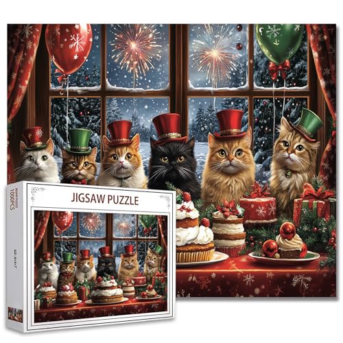 Weihnachten Katze Puzzles für Erwachsene Anfänger 1000 Puzzle Kunst für Heimdekoration Geschenke Familie Puzzle perfekt für Spiel-Nächte 20x27 Zoll