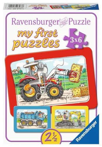Ravensburger Kinderpuzzle - 06573 Bagger, Traktor und Kipplader - My First Puzzle mit 3x6 Teilen - Puzzle für Kinder ab 2,5 Jahren
