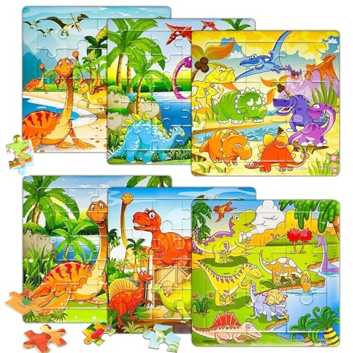 MisFun Set Kinderpuzzle ab 3, Dino-Puzzles ab 3, DREI Schwierigkeitsgrade Dinosaurier Puzzle, Vorschule Lehrreiches Spielzeug, Rahmenpuzzle für Kinder, Kinderspielzeug Puzzle ab 3 4 5 Jahre
