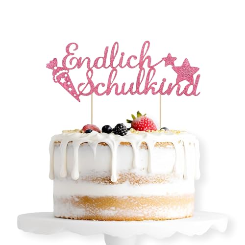 ALEGRE Endlich Schulkind Cake Topper Rosa, Glitzer Schulanfang Tortendeko Einschulung Torten Deko, Schulkind 2025 Kuchen Deko, Zuckertüte Kuchendeko für Junge Mädchen Schuleinführung Party Dekoration