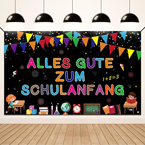 Koliphy Einschulung Banner Deko, Schwarz Schulanfang Banner Alles Gute Zum Schuleinführung Hintergrund Banner Deko Einschulung Dekoration für Mädchen und Jungen, 185x110cm