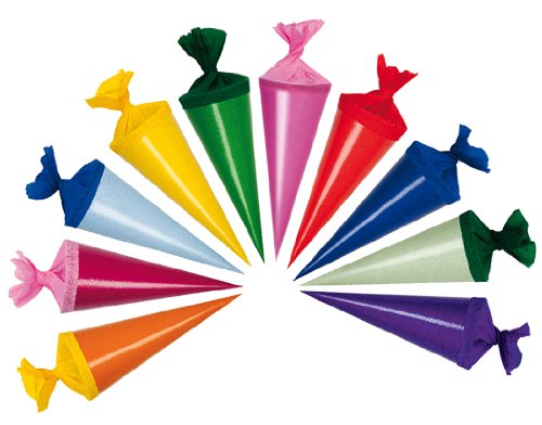 6 Stück: runde - 4,8 cm große Geschenktüten / Schultüten mit buntem Krepp - Abschluß als Deko für den Schulanfang, zum Anhängen an den Zuckertütenbaum oder zum Anhängen an die Schleife bei 70 und 85cm großen Schulanfangstüten viele verschiedene Farben erhältlich: orange, rot, blau, pink, grün und gelb - die Lieferung der Motive erfolgt sortiert passend dazu gibt es auch 12 cm Schultüten, Sticker, Einladungskarten, Pappteller, Girlande, Servietten, Tischkarten, Glückwunschkarte, Partyzahlen zum Aufstecken, Kerzen, Streumotive und Pappbecher - für den Schulanfang, Hersteller: alles-meine.de GmbH