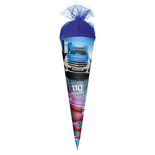 ROTH Geschenk-Schultüte klein Polizei 110" 22 cm - rund Tüllverschluss - Zuckertüte Schulanfang Polizei 110