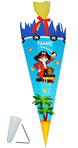 alles-meine.de GmbH BASTELSET Schultüte - Pirat & Schatztruhe - 85 cm - incl. Name - mit/ohne Kunststoff Spitze - Zuckertüte - Set zum selber Basteln - 6 eckig/blau - Jun..