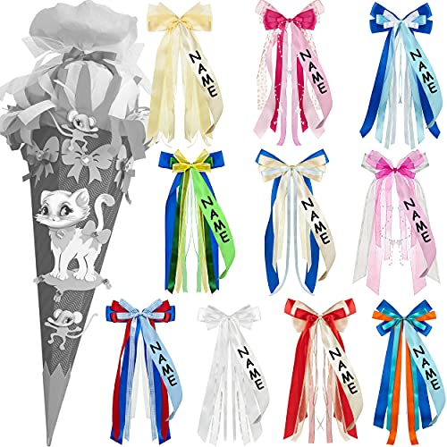mit IHREM Namensaufdruck ! ______ echte HANDARBEIT ! ___ schöne handgefertigte 3D Effekt Schleife ____ mit vielen verschiedenen edlen Satin Bändern passend für IHRE ausgewählte und bestellte Schultüte ___ - > wir suchen eine wunderschöne Schleife zu Ihrer Schultüte aus ( auf den Bildern sehen Sie Beispiele ) XL Größe: die Schleife ist circa 21 cm breit und 47 cm lang ___ ( wunderschöne Deko - die Länge kann individuell gekürzt werden ! - einfach abschneiden ) ___ das breiteste einzelne Band ist 4 cm breit / die Bänder haben verschiedene Breiten und schimmern wunderschön im Licht damit wird Ihre Schultüte ein noch schönerer Blickfang _____ der Name wird passend angefertigt ___ die Nachfrage des Namen`s erfolgt - AUTOMATISCH innerhalb 4 Stunden - bitte vorher KEINE Nachricht senden ___ außerdem im Shop für Sie erhältlich: kleine 12 cm Tüten als Deko zum Dranhängen, Namenschilder, Tischdeko, Schultüten mit Stiel für Blumengestecke, Streumotiven, Girlanden und Partyartikel … u.v.m., Hersteller: alles-meine.de GmbH - Roth Schultütenbastelset B..