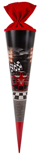 goldbuch 97 089 Schultüte Racing Champion, Geschenktüte mit Rennwagen-Motiv, Lackkarton, Geschenkverpackung mit rotem Filzverschluss (ohne Verschlussband), Zuckertüte rund, Länge 70 cm, Ø 19 cm