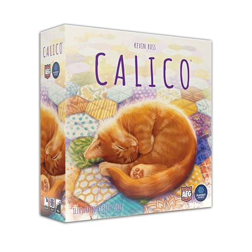 Calico is a puzzly tile-laying game of quilts and cats! Calico comes with many different cat and pattern goals to mix and match new challenges each and every time you play! There are thousands of unique puzzles! Calico can be played solo! The solo game elegantly simulates a 2-player experience by turning the tile market into a conveyor-belt. Calico also has a family mode! If you are playing with children, those new to gaming, or you just want to make the puzzle a little simpler, you simply flip over the design goal tiles and only play for cat and color points! 1-4 Players | Ages 10+ | 30-45 Minutes | English, Hersteller: Alderac Entertainment Group (AEG)