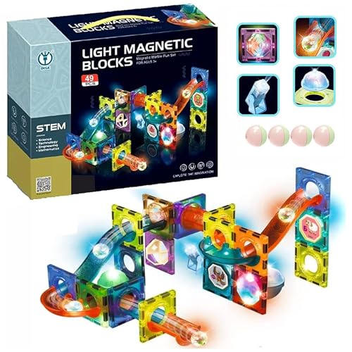 CELMAN Magnetische Bausteine 49 Teile Magnete Bauklötze Murmelbahn mit Zubehör, Montessori Spielzeug, Magnet Kugelbahn für Kinder ab 3 4 5 6 7 8 Jahre STEM Lernspielzeug Geschenk