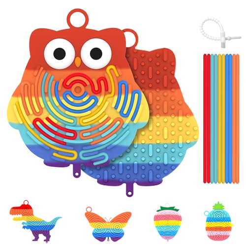 BDWing Sensorik Spielzeug Activity Board, Silicone Sensory Fidget Toys, Doppelseitiges Spielzeug für Flugzeug Restaurant Autofahrt Beschäftigung Kinder ab 3 Jahr & Erwachsene (Eule, Regenbogen)