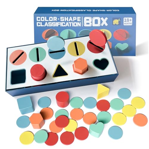 Goujfol Steckspiel für Kinder, Holzspielzeug Kinder Farbe Sortierspiel, Montessori Spielzeug Steckspiele, Lernspiele Sensorisches Spiel Geschenke