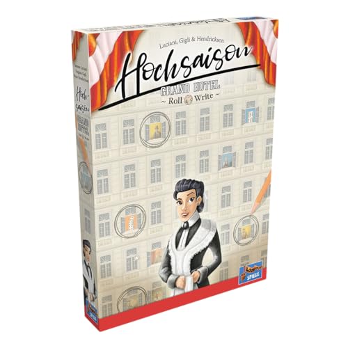 In dem kompetitiven Kennerspiel Hochsaison: Grand Hotel Roll & Write führst du ein prestigeträchtiges Hotel in Wien zu Beginn des 20. Jahrhunderts. Gäste aus aller Welt wollen ein Zimmer bei dir In der Hochsaison ist besonders viel los und Gäste aus aller Welt wollen die Zimmer in deinem Hotel beziehen und erwarten exquisiten Service. Selbst dem Kaiser ist deine Nobelherberge aufgefallen Stelle dich innerhalb einer Partie von 7 Runden den Anforderungen des Hotelalltags: Zimmer vorbereiten, Gäste einquartieren, Personal einstellen, Finanzen managen und die Gunst des Kaisers sichern Wähle die passenden Würfel aus, um Aktionen erfolgreich auszuführen und erspiele wertvolle Boni auf dem Hotelplan. Der Spieler, der die meisten Punkte erzielt hat, gewinnt die Partie des Würfelspiels 2-4 Spieler, Ab 12+ Jahren, 45 Minuten Spielzeit je Partie, Autoren: Virginio Gigli, Simone Luciani und Ryan Hendrickson, Spiel in Deutsch, Hersteller: Lookout Spiele