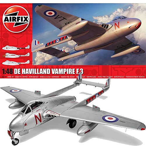 Airfix Hängende Modellflugzeug-Kits - de Havilland Vampire T.11 Modellbau-Set, Maßstab 1:72, Modellflugzeug-Kit für Erwachsene & Kinder ab 8 Jahren, Flugzeugmodelle, Militärgeschenke für Männer zum