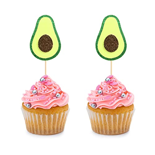 24 Stück Obst Avocado Cupcake Topper für Fiesta Fruit Party Happy Avocado Holy Guacamole Party Geburtstag Party Hochzeit Babyparty Kuchen Dessert Dekorationen Zubehör Picks