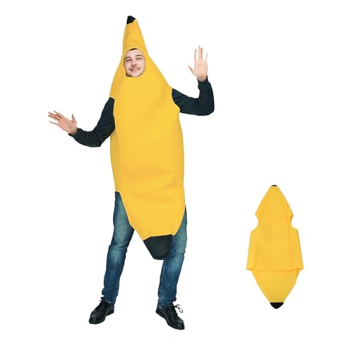 148X65CM Bananen Anzug Banane Kostüm Karneval Herren Lustige Kostüme Witzige Verkleidung Fasching Outfit Erwachsene Bananen Outfit Lustiges Ideal für Karneval Partys Verkleidungsevents und Spaßanlässe