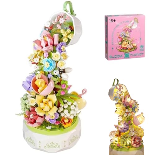 FULHOLPE Blumenstrauß Musikbox Bausteine, 575 Klemmbausteine Street View Architektur Modellbausatz, Technik Spieluhr des Blumen Bauset Kompatibel mit Großen Marken