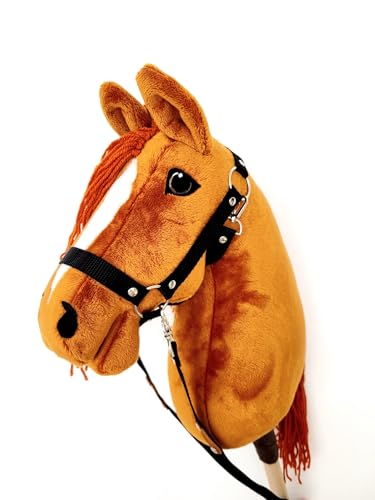 HORSE & toys Steckenpferd Ikar großes Set (Pferd auf einem Stock) + schwarzes Zaumzeug + Zügel + Apfel (rud)