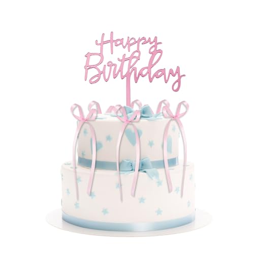 Kotkiddy Schleife Kuchenverzierer Band Kuchenverzierer mit Happy Birthday Schild Coquette Themen Party Vintage Kuchenverzierer für Herz Kuchen Vintage Kuchen (Pink)