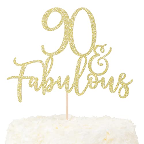 LOVENJOY Cake Topper 90 und Fabulous Geburtstag Tortendeko Gold Glitter 90. Kuchen Topper für 90th Birthday Party Kuchen Dekoration