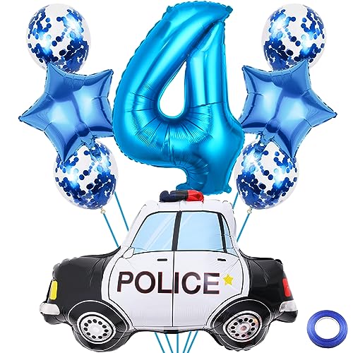Liitata 6. Polizei Geburtstagsparty Deko Polizei Luftballon Set Blau Zahl 6 Folienballon Großes Polizeiauto Luftballon für Junge Geburtstag Party Motto Party Deko
